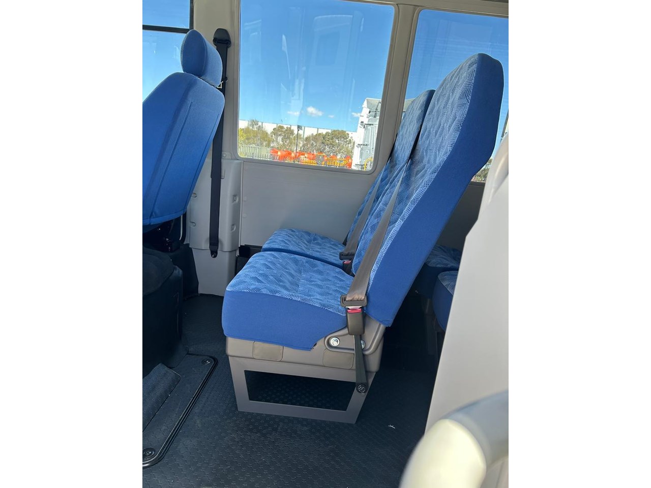 - High back fabric seats with 3-point lap sash seatbelts