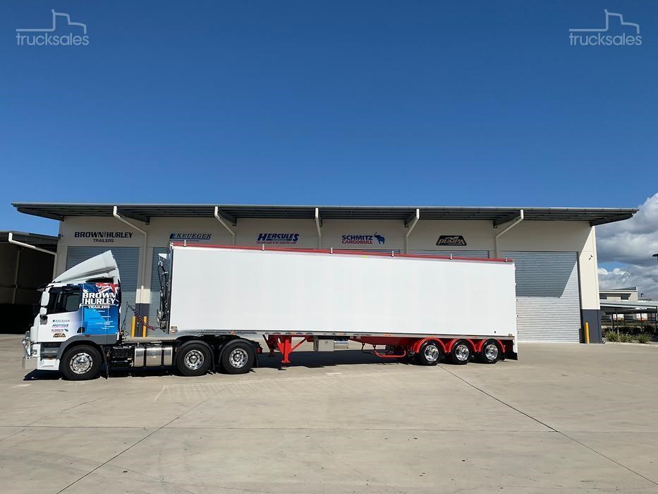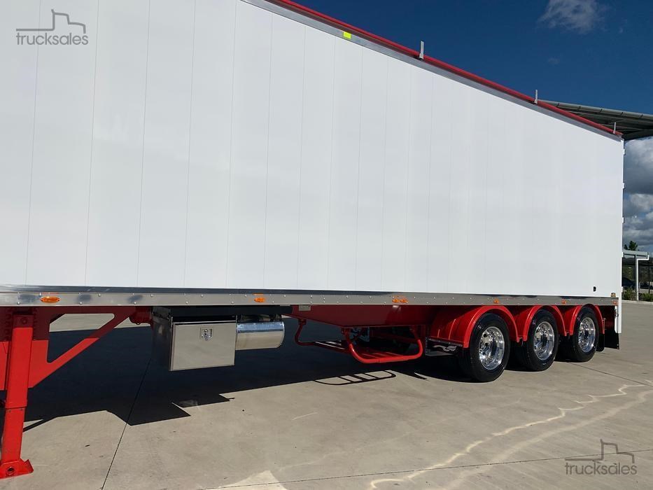 IN STOCK!!!!! New 2025 Pumpa 45ft wedge, White with red chassis, Hendrickson Intraax airbag Suspension, HXL7 Axles, EBS c/w Auto Slacks, Cargo CF500 6mm ribbed floor, Manual vinyl rollover tarp c/w Air Operated Flip Over Centre Bar, alloy barn doors, Hydraulic sweeper tarp, Front access door, Tail-light protection tarp, Right weigh scale, Polished alloy rims, 10 stud 285 PCD, Road Train Bracket & coupling. Call for a Quote & Inspection today.